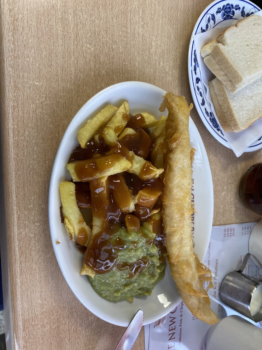As of 15/11/2024 (Lunch) Taste:6⃣ Environment:5⃣ Seating:5⃣ Service:5⃣ Portion size:6⃣ Value for money:6⃣ *on a scale of ten Overall Score:55 / 100 Average cost per person:£7.5 (including Coffee) I tried a very local Fish and Chips shop where most of the customers were locals. In these kinds of small shops, ketchup or salad dressing usually costs extra, while locals typically season their food with salt and vinegar instead. Small Fish & Chips with Mushy Peas